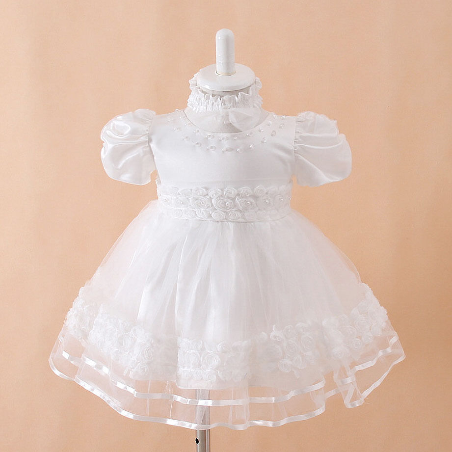 Baby Girl Cream White Wedding Birthday Celebrate Rose Lace Pearl Dress With Headpiece Band 6M