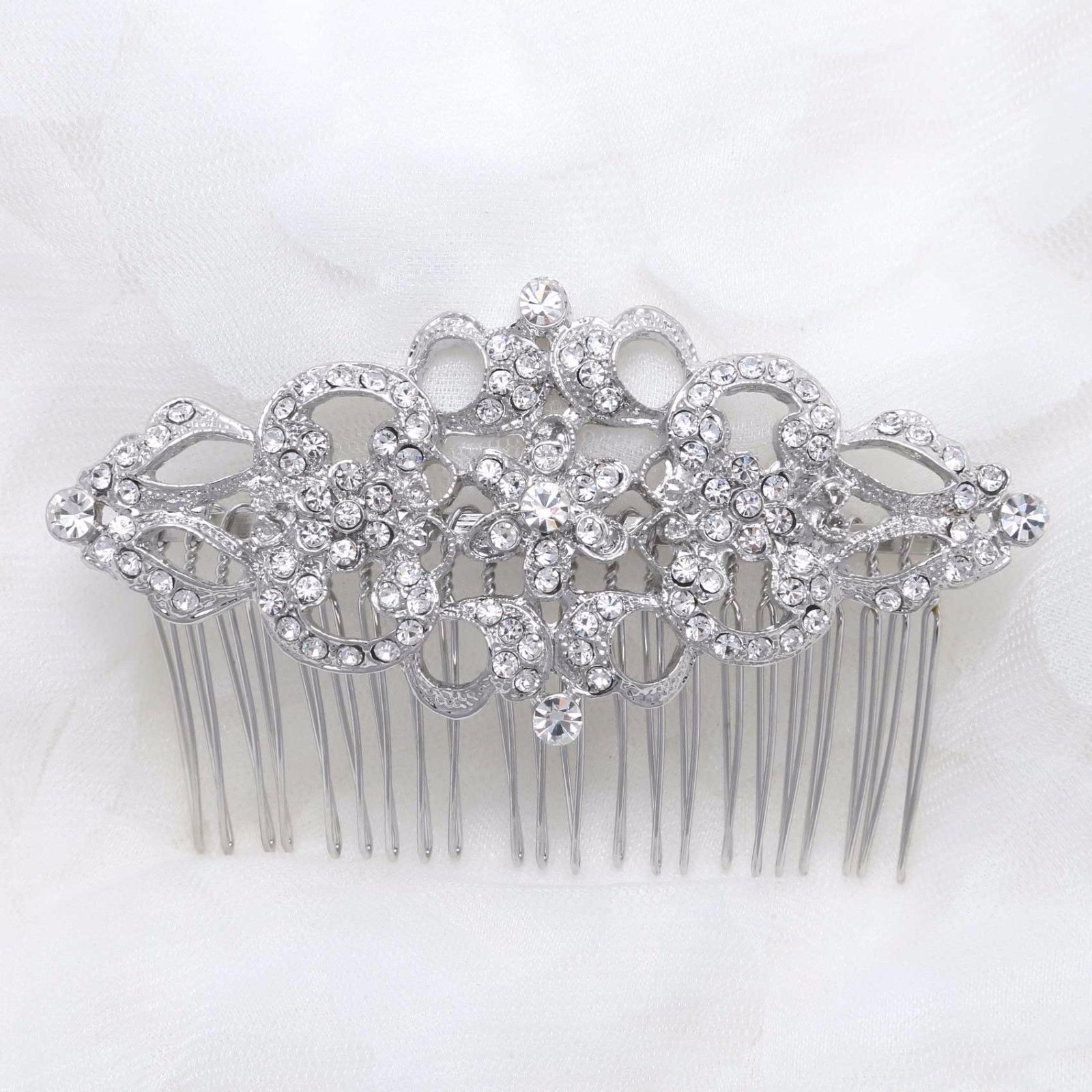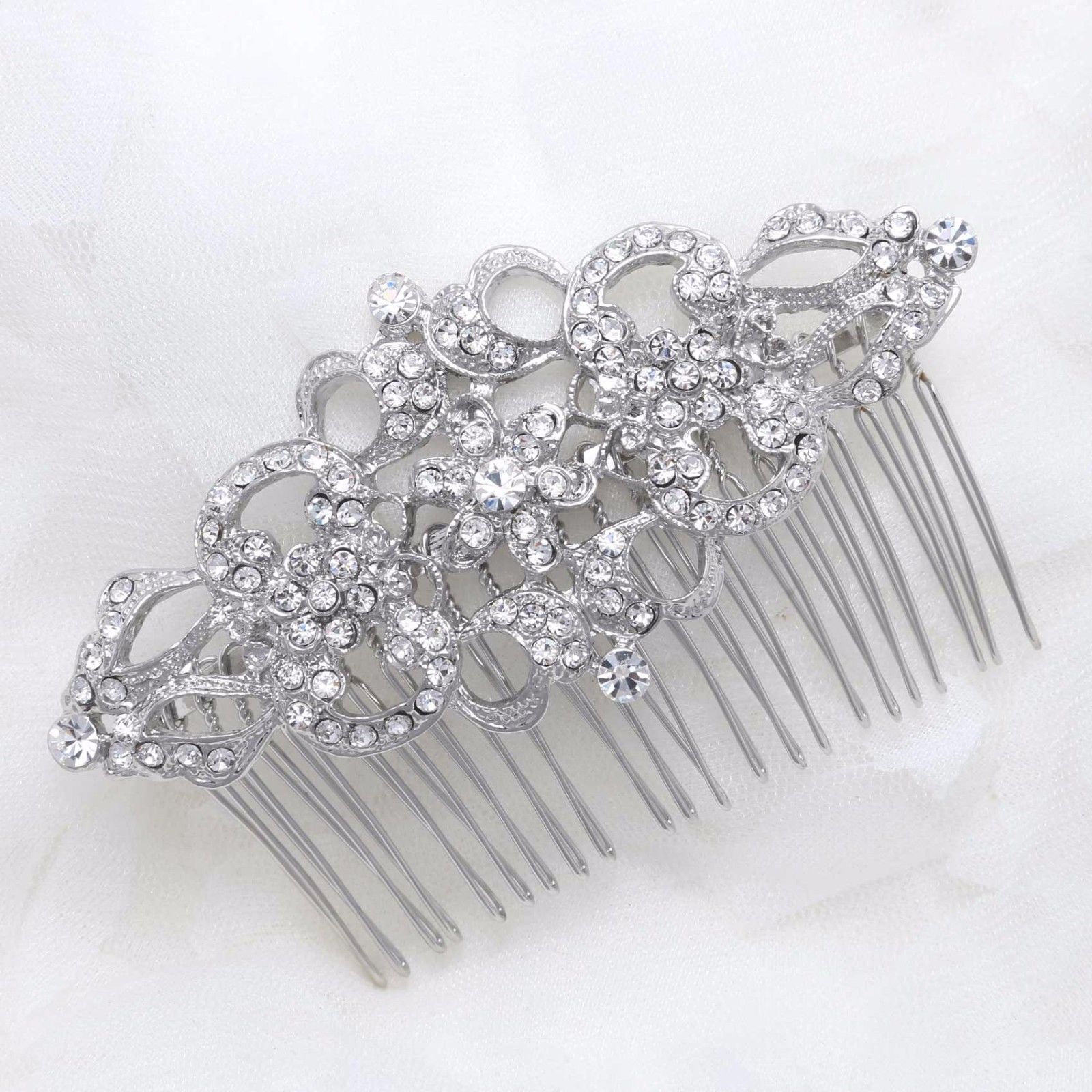 Handmade Silver Vintage Style Rhombus Rhinestone Crystals Wedding Bridal Dress Hair Comb
