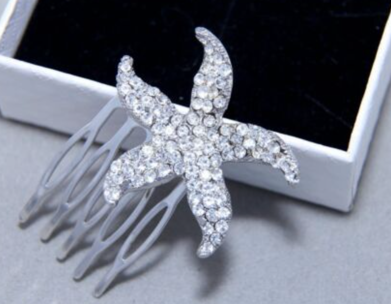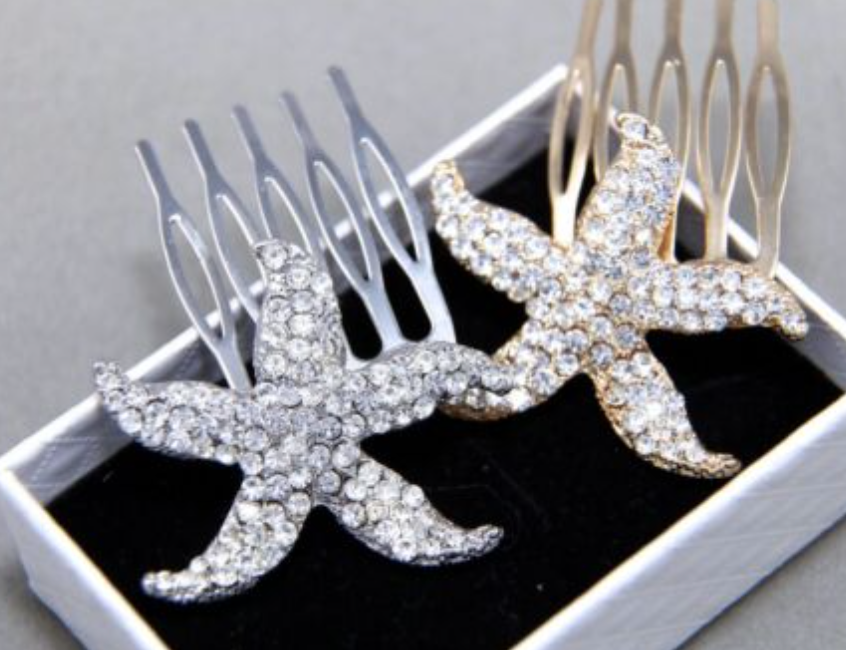 This beautiful gold or silver starfish star hair comb