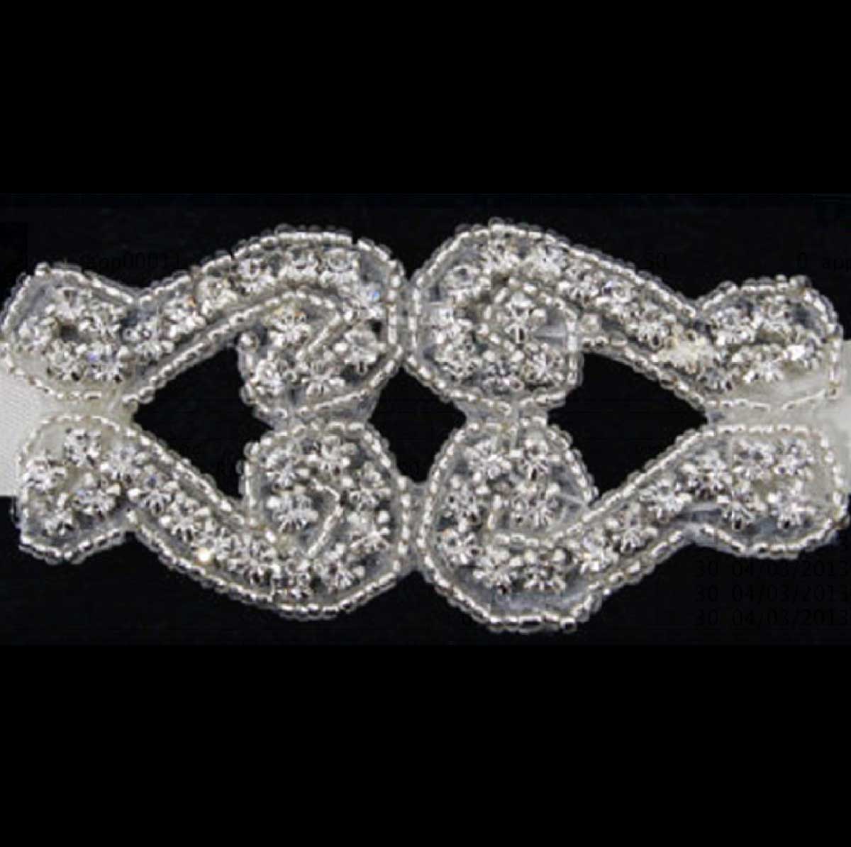 GLASS IRON/ SEW BEADED CRYSTAL RHINESTONE WEDDING EMBROIDED VINTAGE APPLIQUE