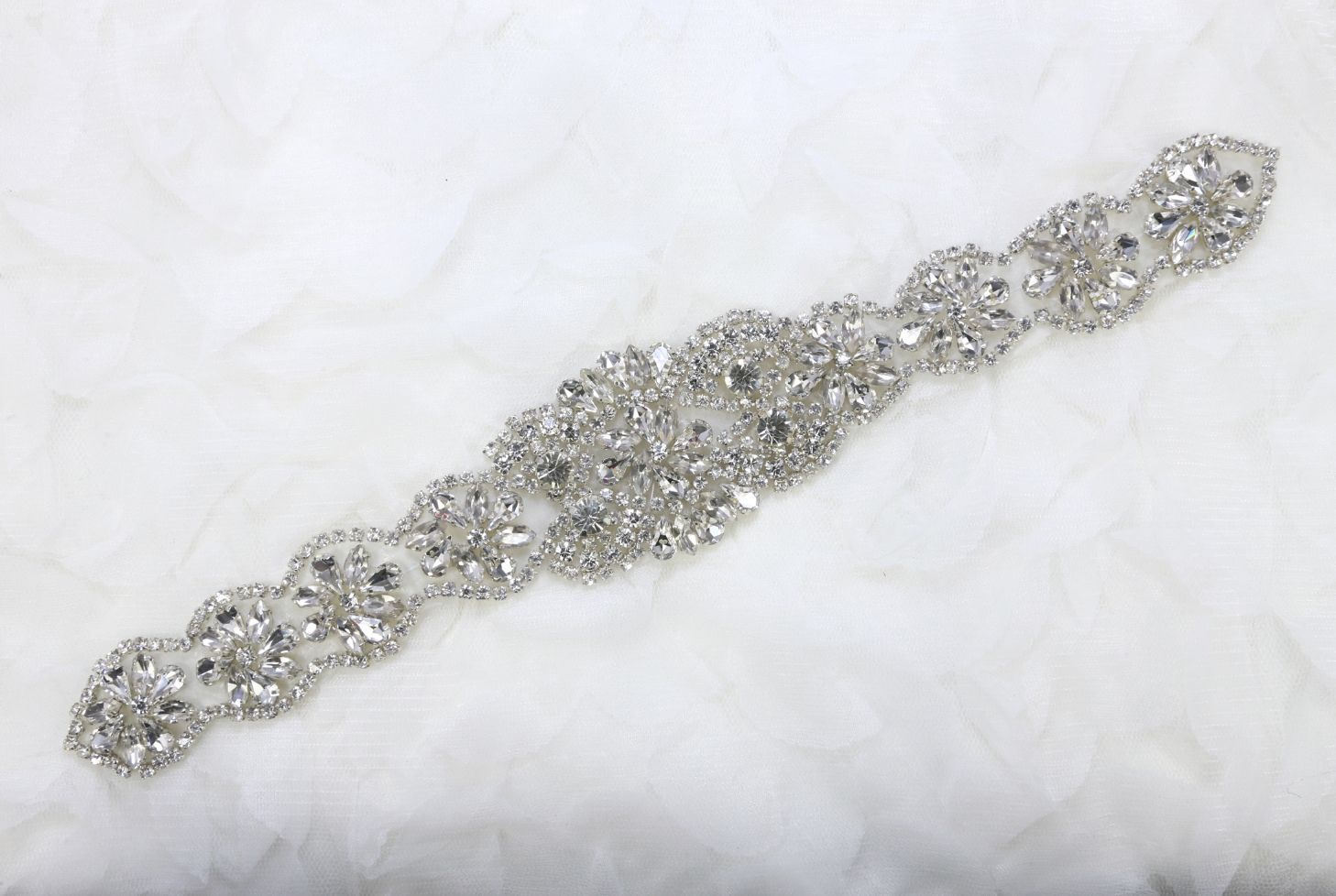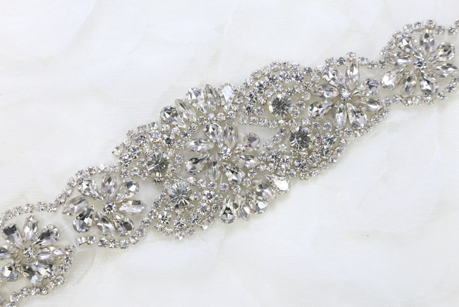 Vintage Style Classic Flowers Long Crystal Rhinestone Wedding Bridal Applique
