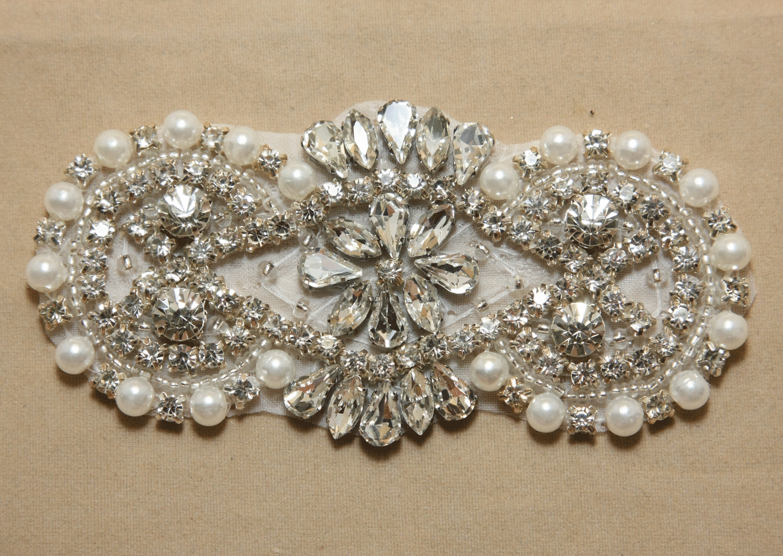 Description:handmade beaded sparkling glitter applique, Suit for wedding or poem,perfect accessory for making sash,headband,headpiece,garter,flower bouquet and other decoration