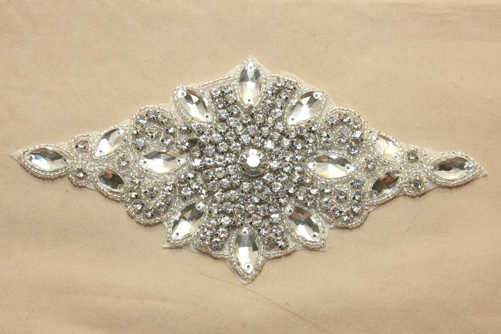 Sew/Iron Crystal Rhinestone Sash Sunflower Applique Wedding Bridal Craft Motif