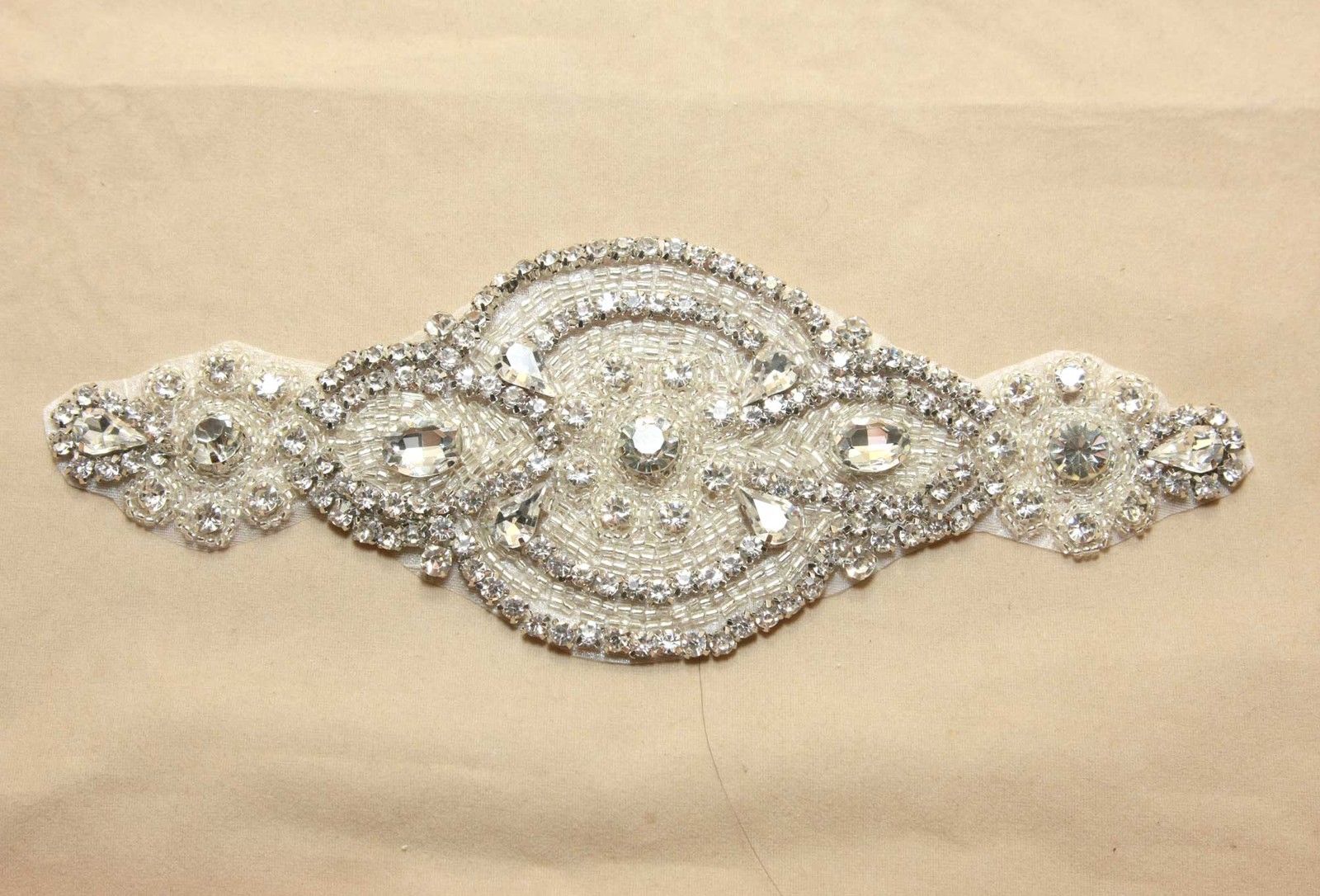 8" Sew/Iron Crystal Rhinestone Sash Applique Wedding Bridal Craft Motif