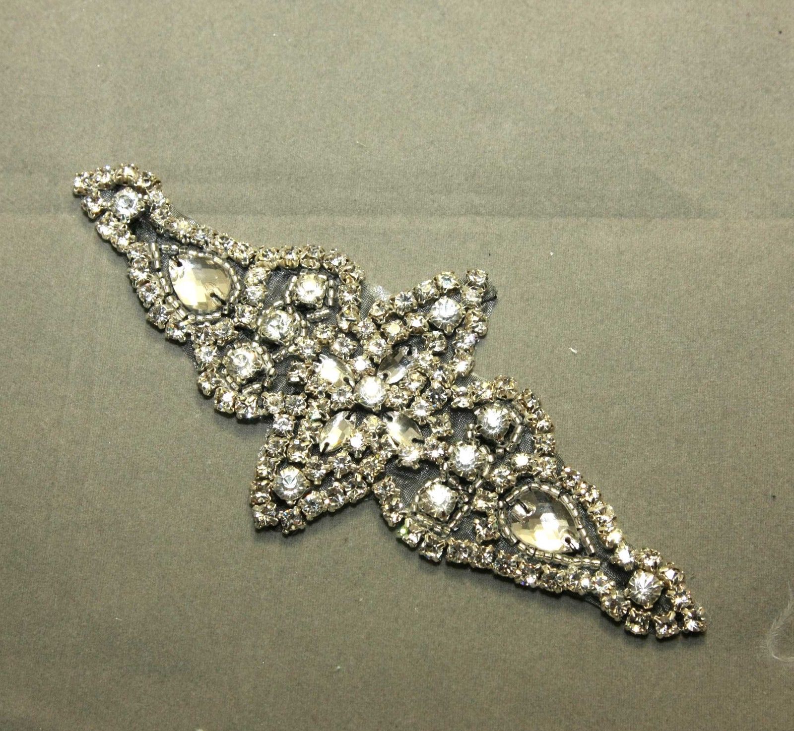 Black Base - Crystal Rhinestone Abstract Applique Wedding Bridal Glass Iron on Applique Patch
