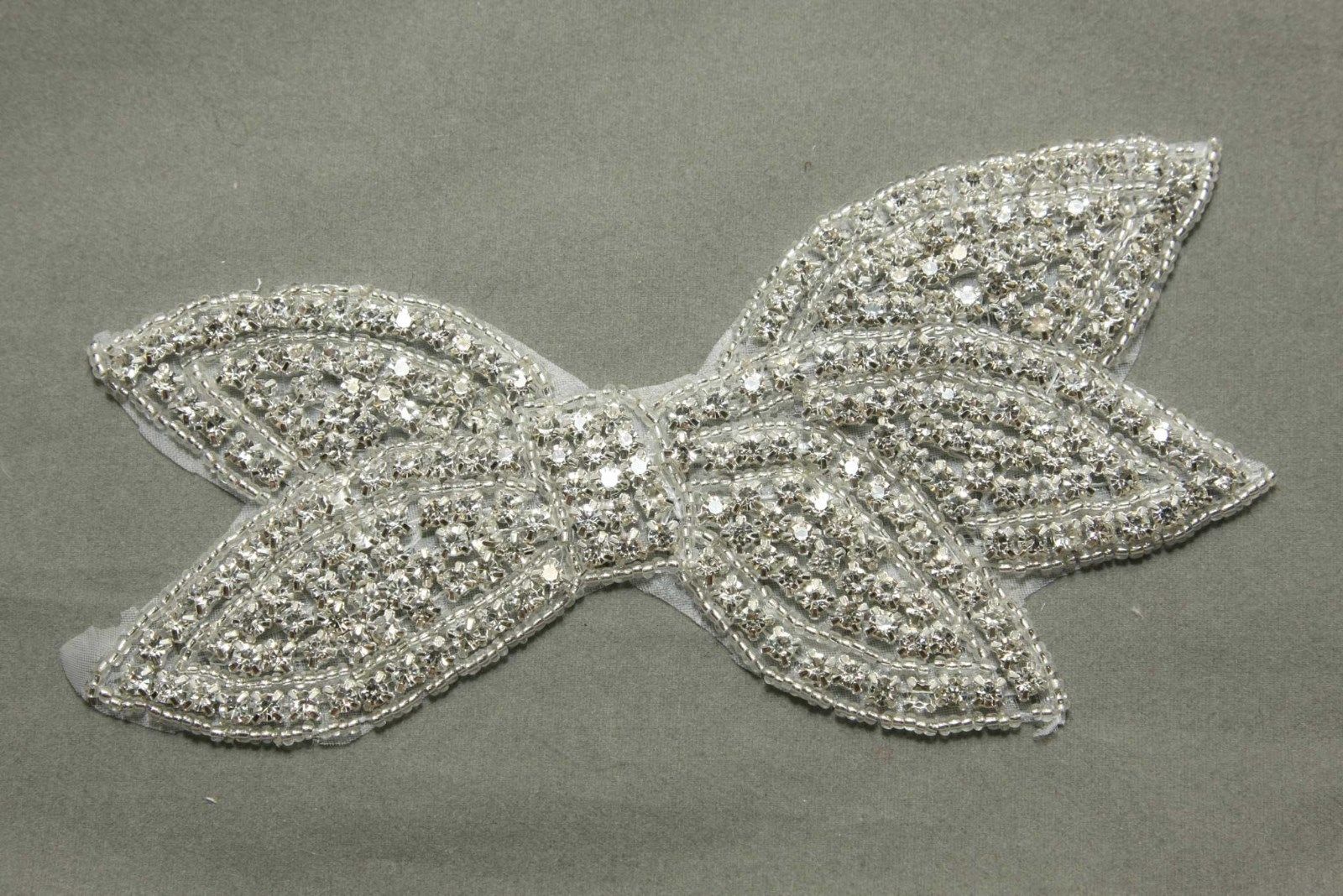 Crystal Rhinestone Bow Applique Wedding Bridal Glass Iron on Applique Patch
