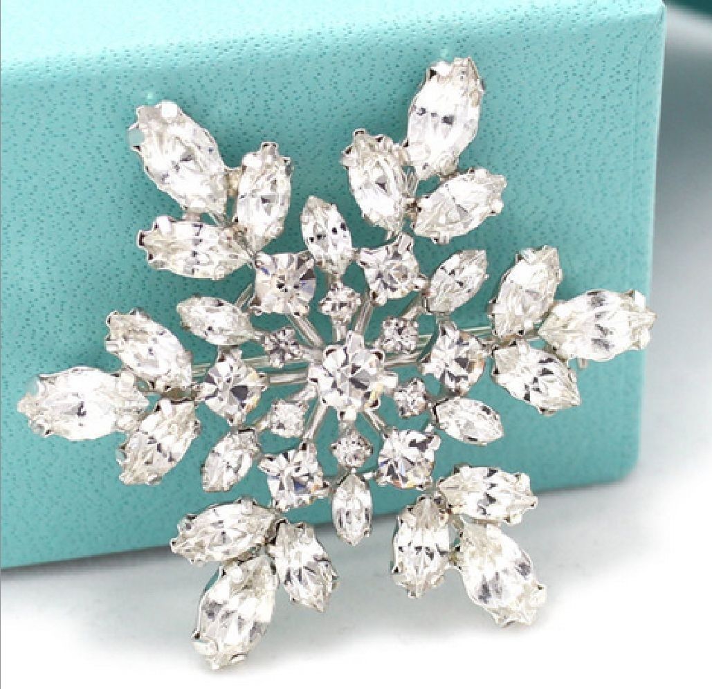 Snowflake Snow Christmas Wedding Rhinestone Crystal Brooch Pin
