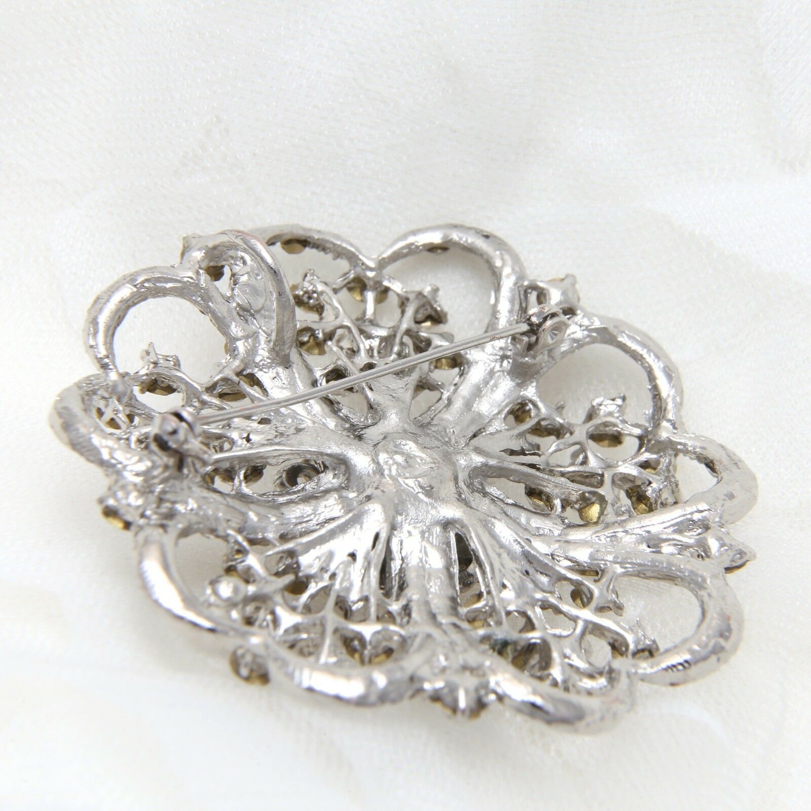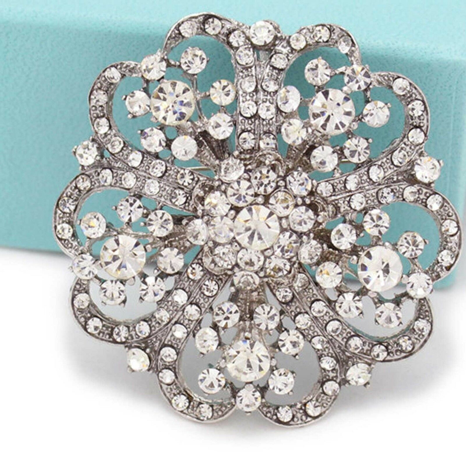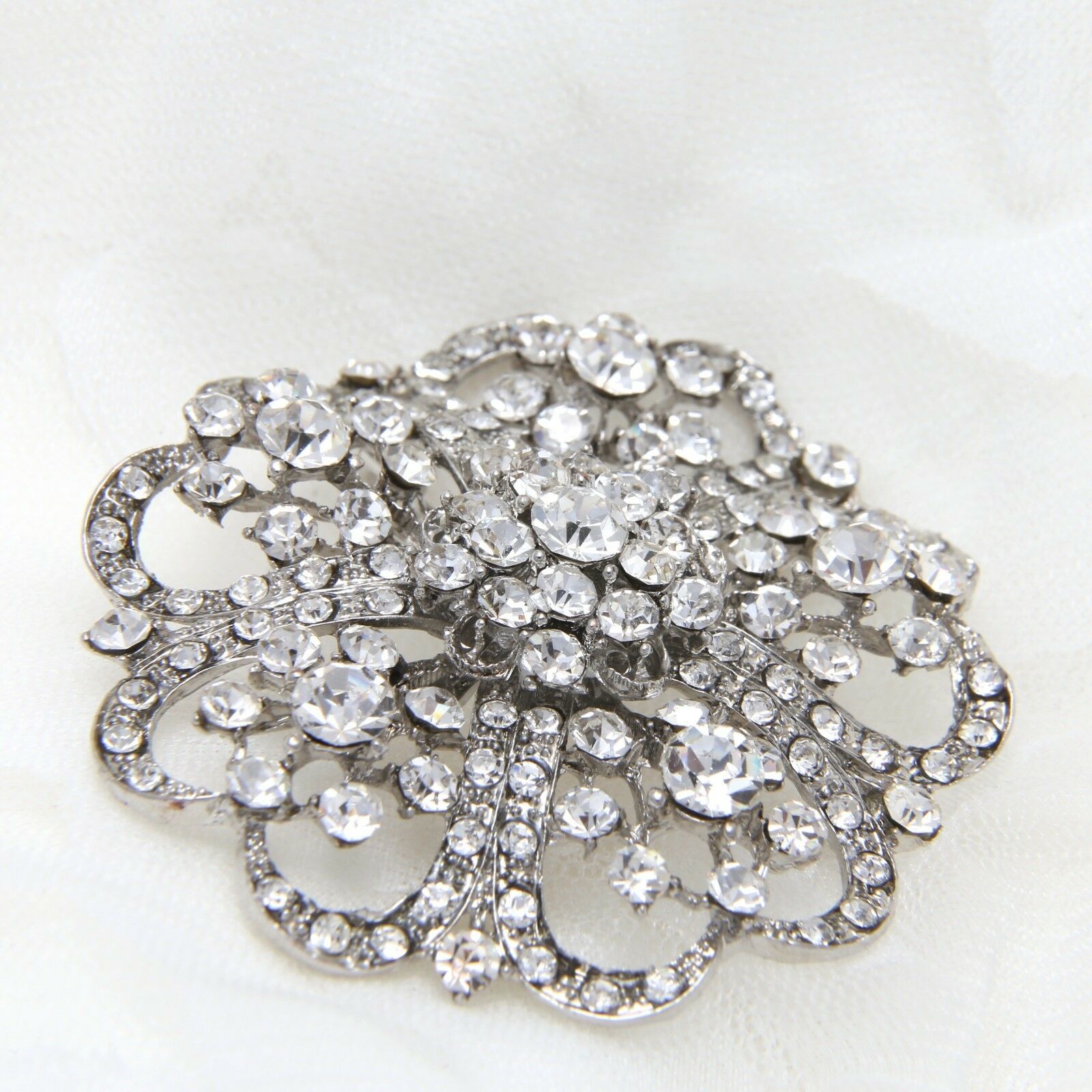 Rhinestone Crystal Silver Flower Brooch Pin Wedding Jewellery