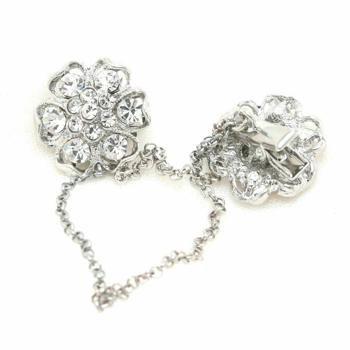 Vintage Flower Rhinestone Crystal Coat Shawl Scarf Guard Chain Sweater Clip