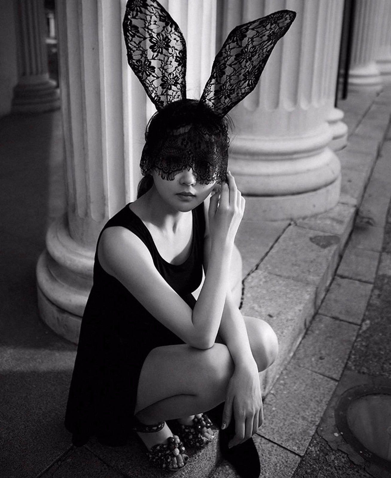 Sexy Black Lace Veil Mask Rabbit Ear Party Headband Hair Accessory