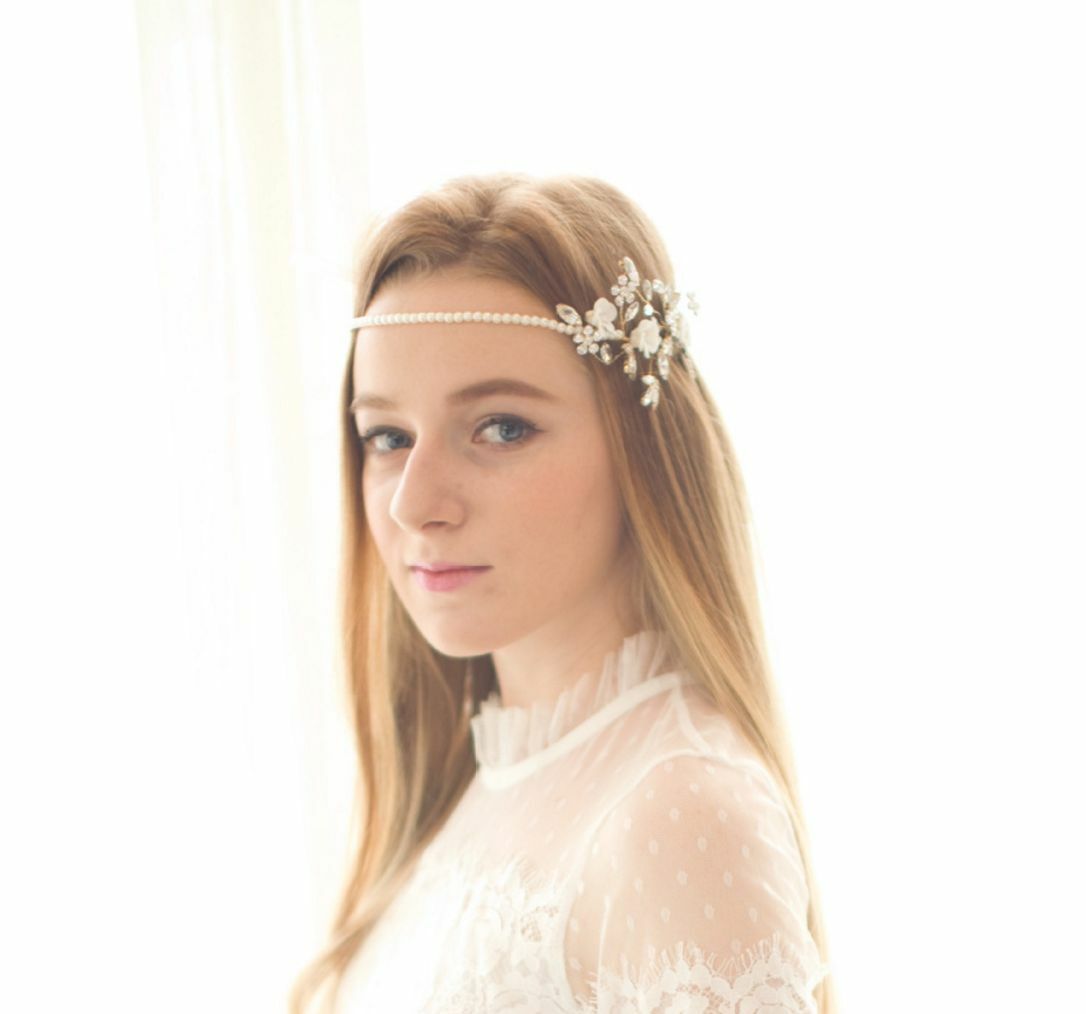 Soft pearl chain ribbon hair accessories, This beautiful clear vintage flower rhinestone crystal tiara perfect for bride.