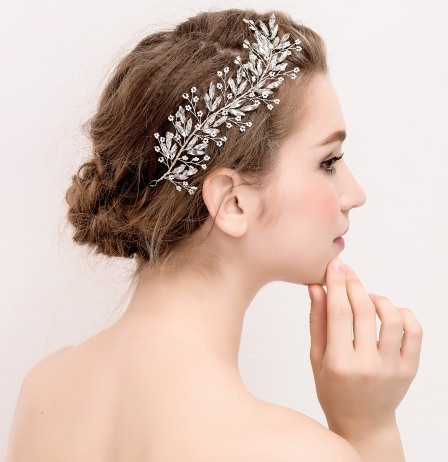 Wedding Rhinestone Crystal Pearl Flower Gold Silver Bridal Hair Headband Tiara
