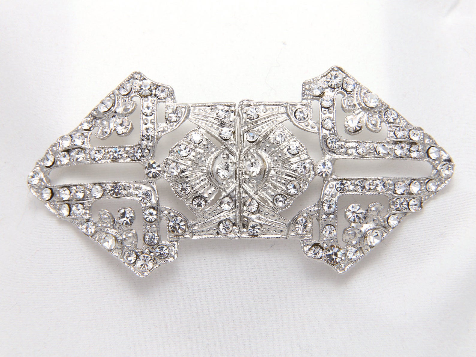 Vintage Style Silver Tone Rhinestone Crystal Wedding Sash Belt Hook Clasp Button
