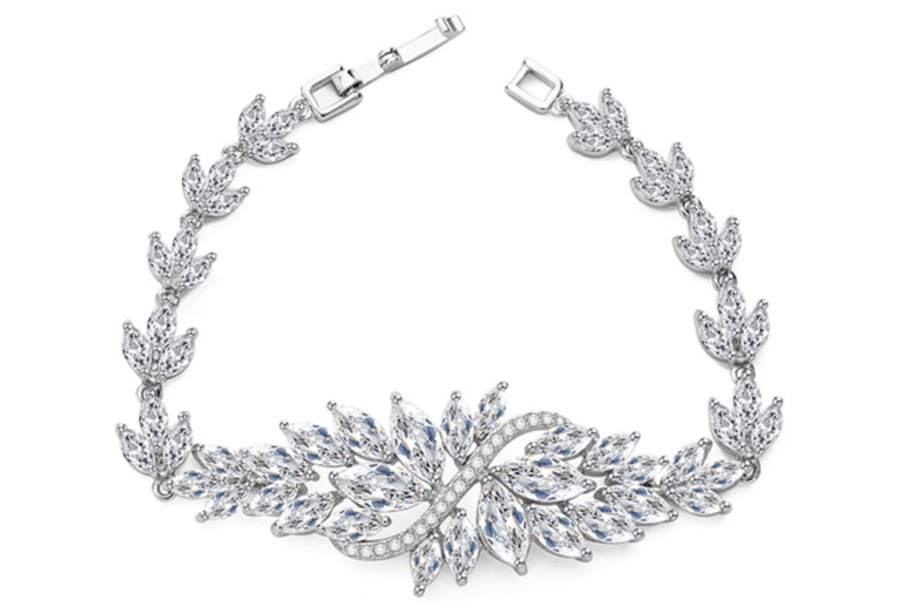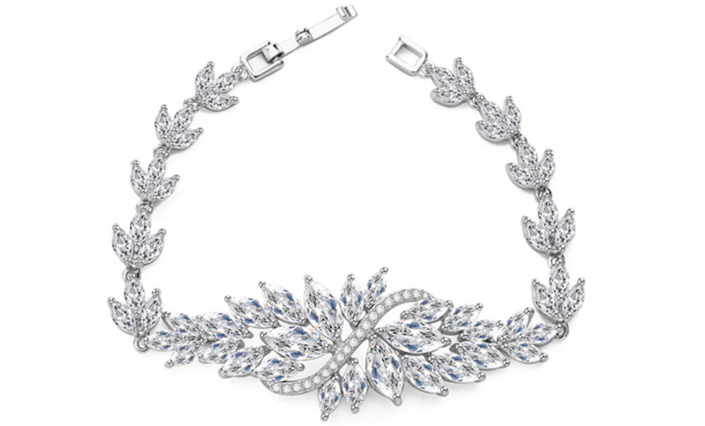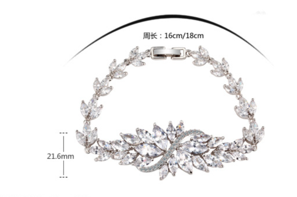 Cubic Zirconia Crystal White Platinum Plate Wedding Bracelet
