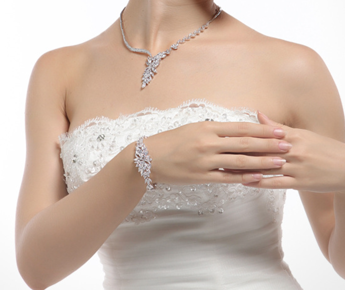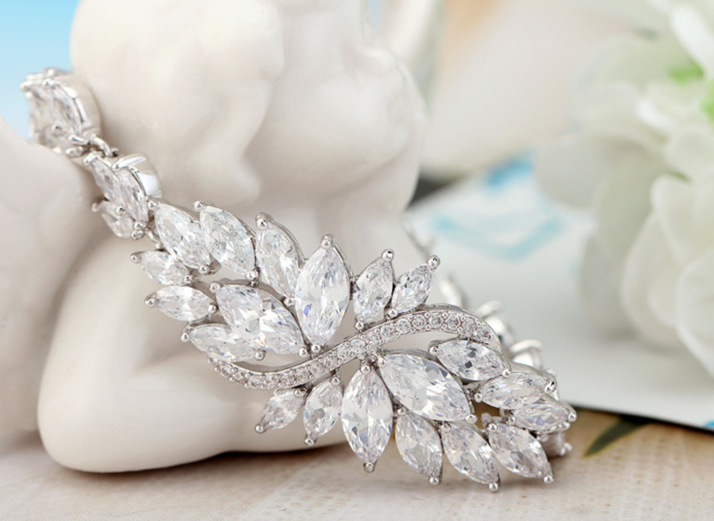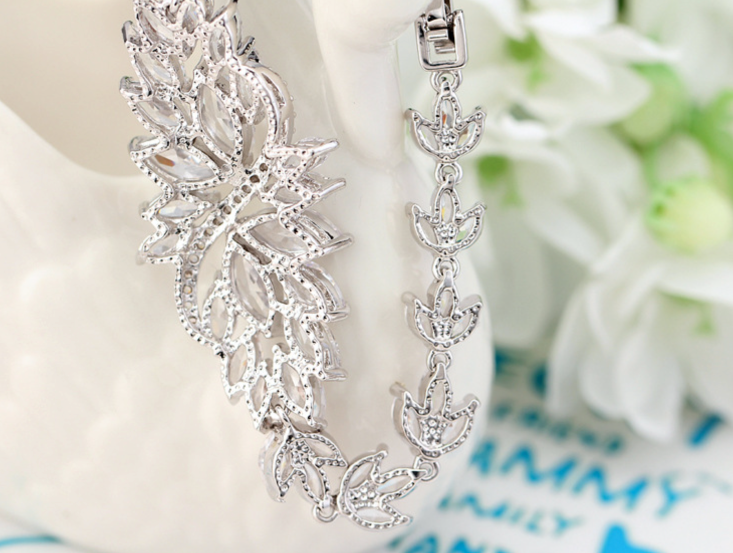 Cubic Zirconia Crystal White Platinum Plate Wedding Bracelet