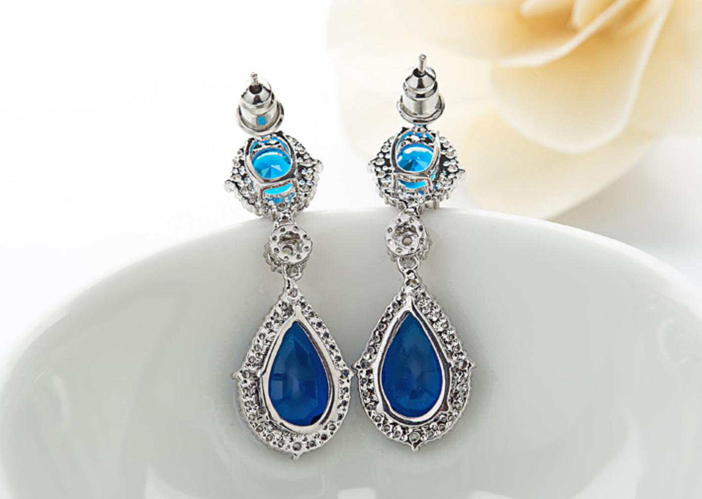 White Platinum Blue Cubic Zirconia Crystal Earrings