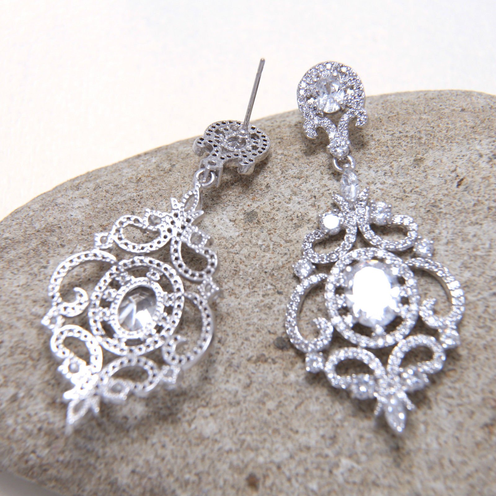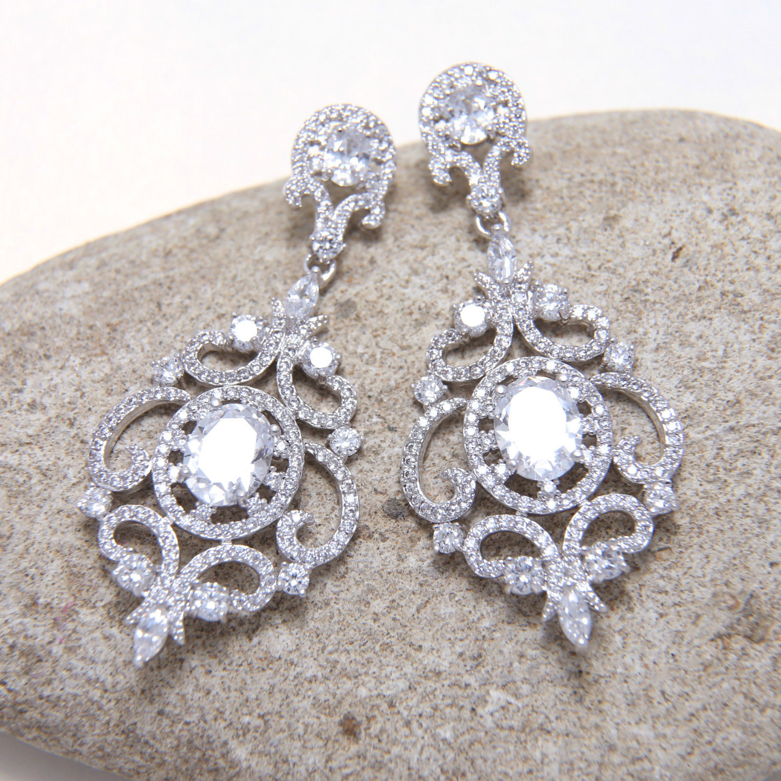 Cubic Zirconia Crystal Diamante Bridal Vintage Stud Wedding Chandelier Earrings