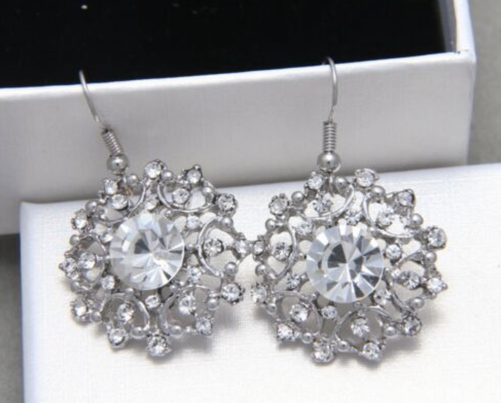 Flower Earrings Bridesmaids Snowflake Rhinestone Crystal Wedding Jewelry