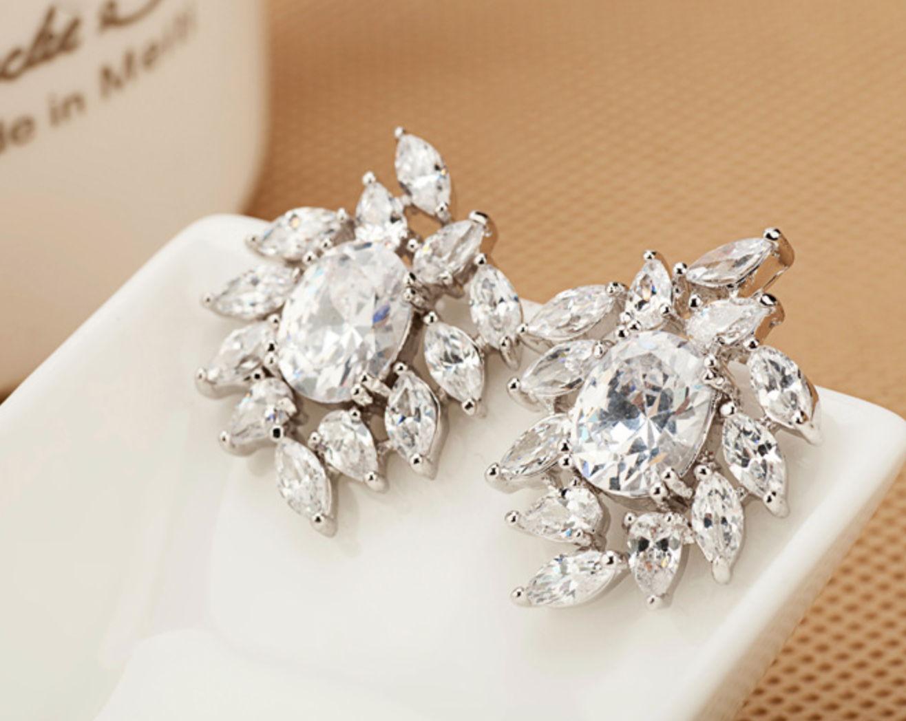 Diamante Cubic Zirconia CZ Crystal Wedding Bridal Earrings Birthday Gift
