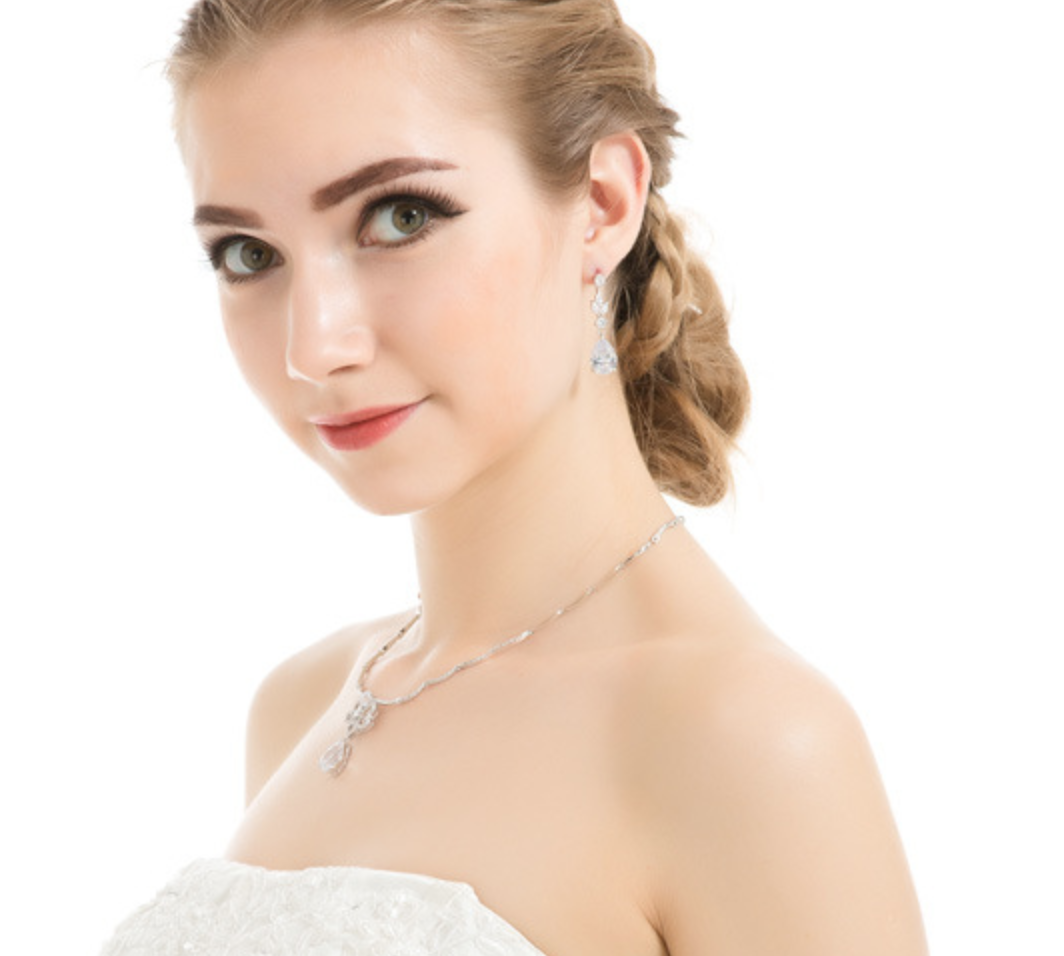 Wedding Bridal Stud Silver Cubic Zirconia Wedding Teardrop Chandelier Earrings