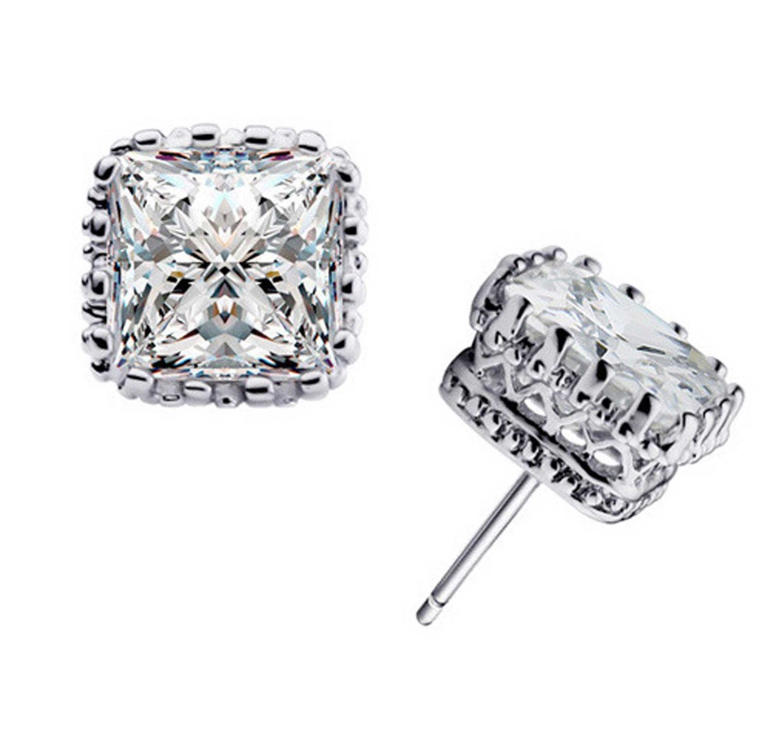 Wedding 8mm CRYSTALS SQAURE SILVER STUD EARRINGSWedding Groom Bride 8mm RHOMBUS ZIRCONNIA CRYSTALS Stud Earrings