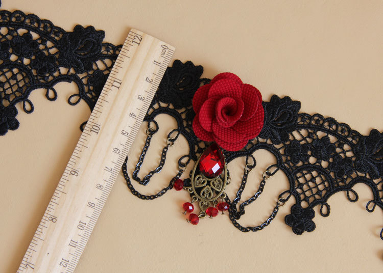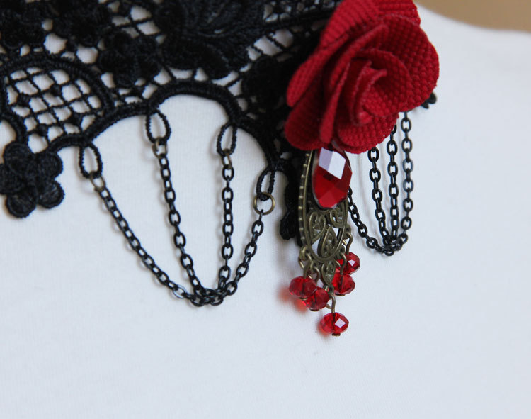 Black Floral Lace Red Rose Drop Tassel Chain Gothic Goth Lolita Choker Necklace