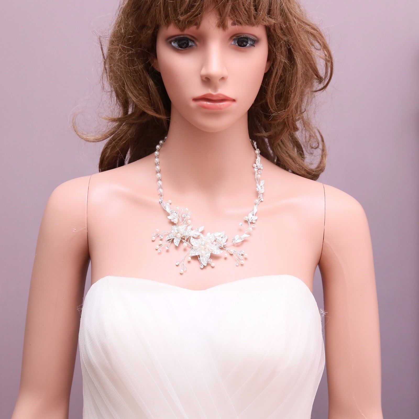 Pearl Flower Rhinestone Chain Silver Choker Necklace Wedding Jewelry