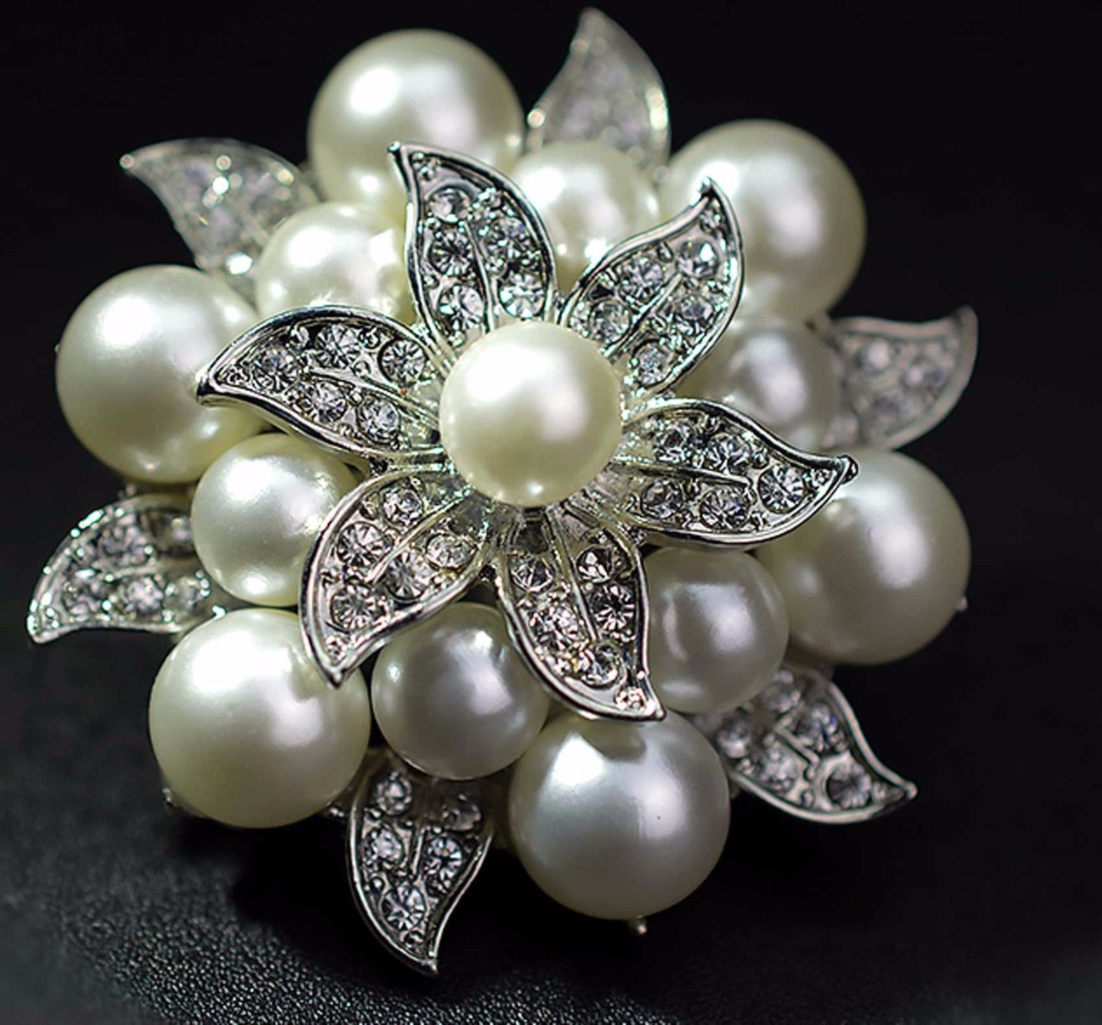 Silver Flower Pearl Rhinestone Crystal Wedding Bridal Shoe Clips Pair