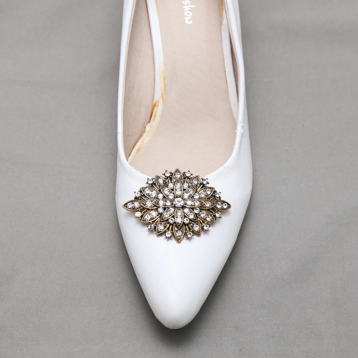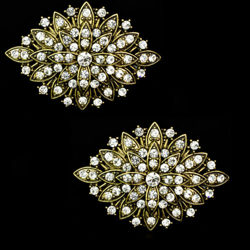 2 Pcs Crystal Shoes Old Gold Copper Rhinestone Crystal Shoe Clips