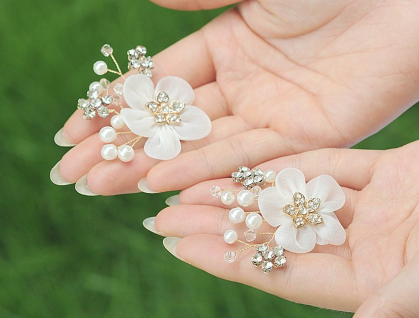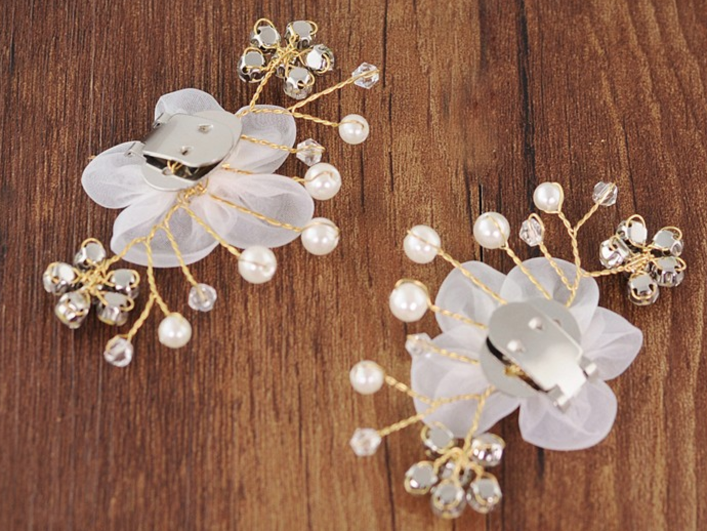 2 PCs Rhinestone Crystal Gold Pearl Flower Shoe Clips