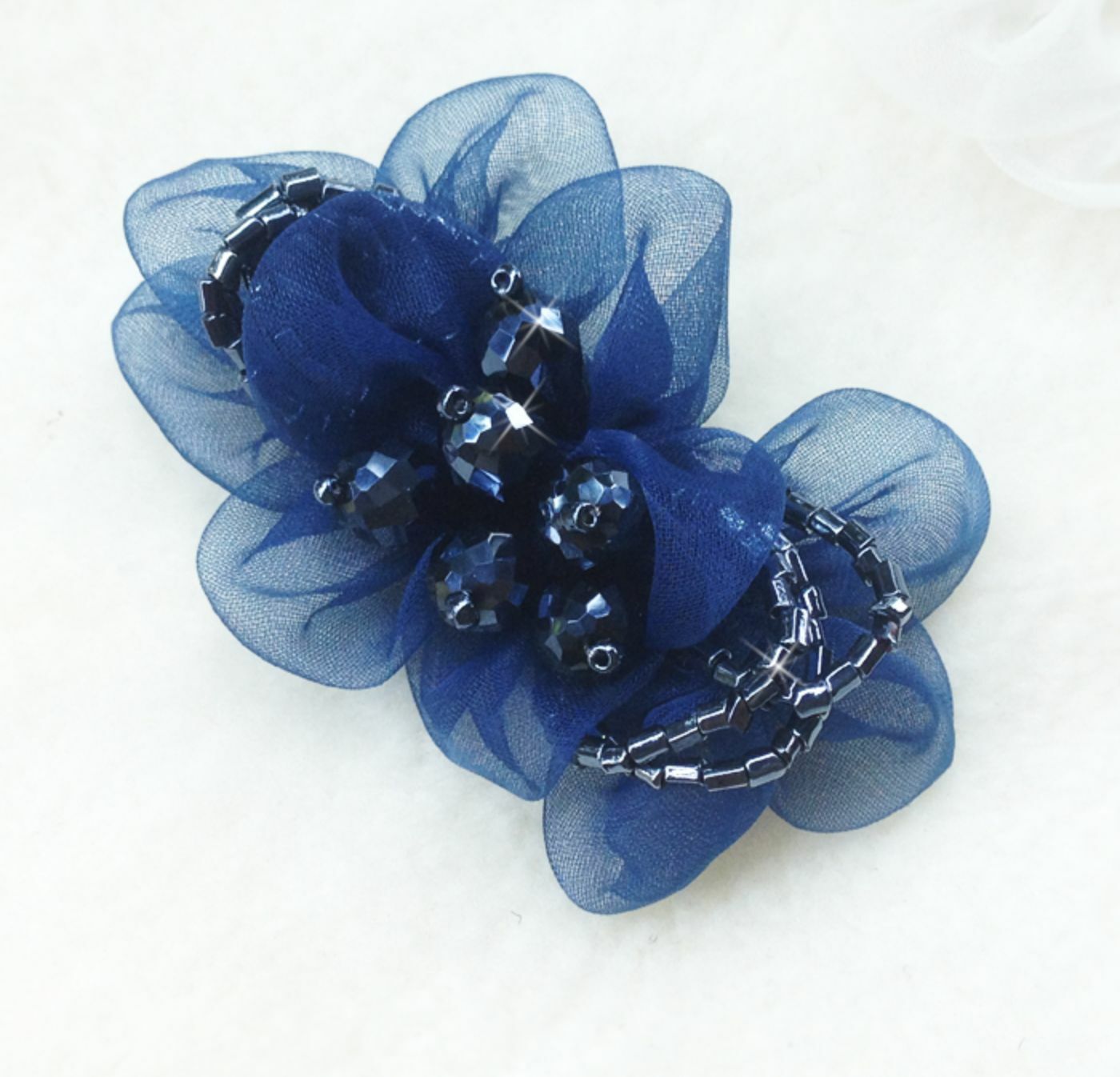 2 PCs Organza Crystal Beaded Flower Shoe Clips