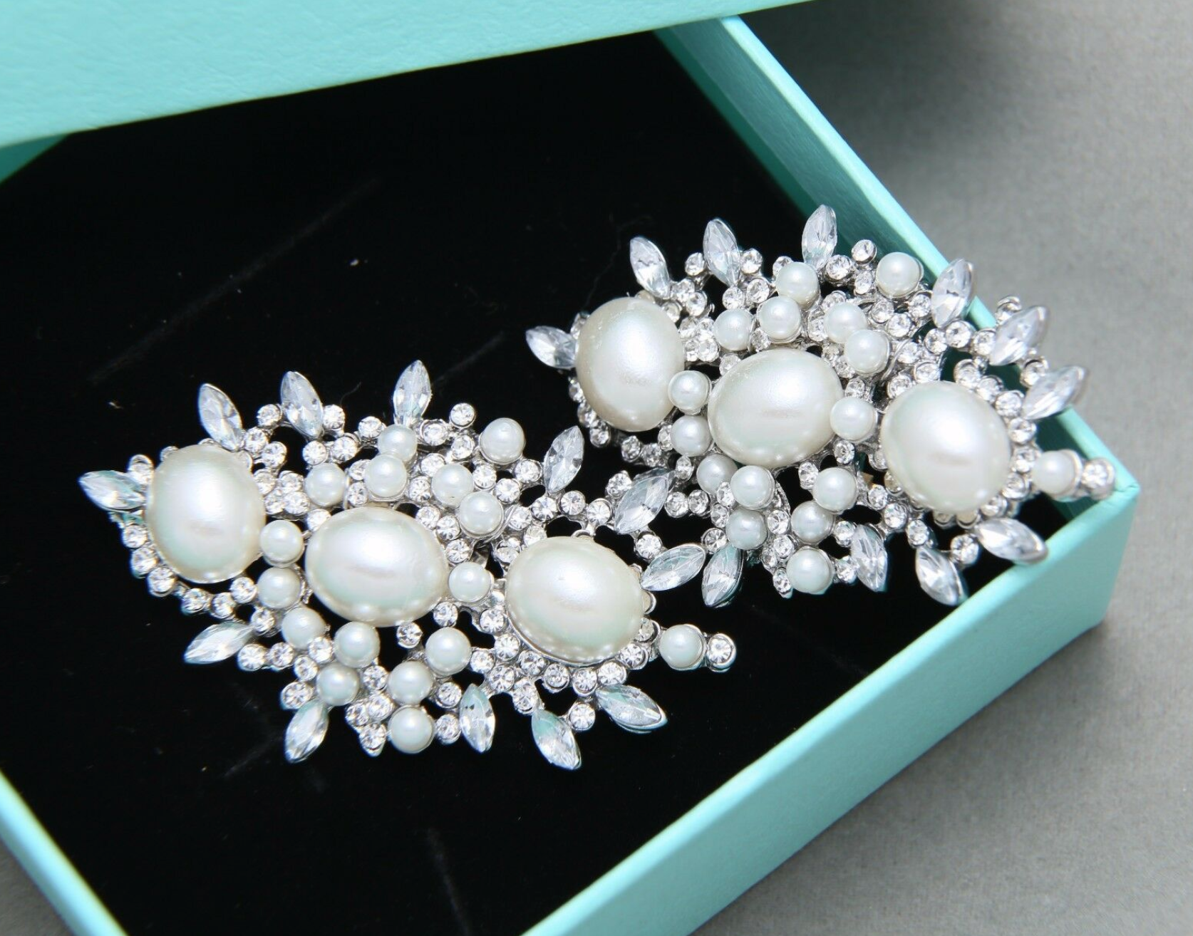 2 PCs Handmade Pearl Crystal Beaded Wedding Shoe Clips