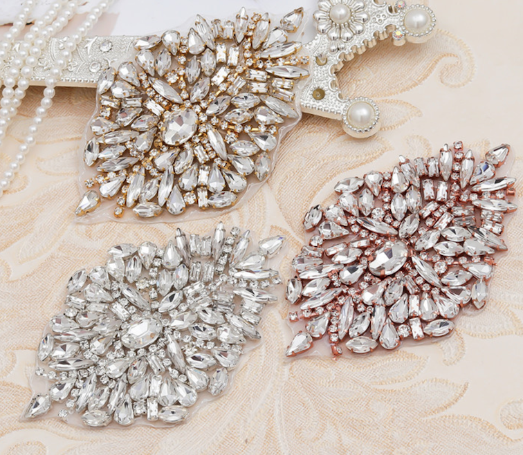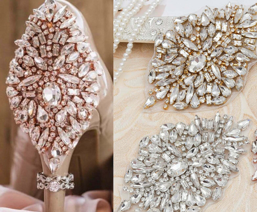 1 Piece Rhinestone Crystal Gold Rose Gold Silver Wedding Bridal High Heel Shoes Applique