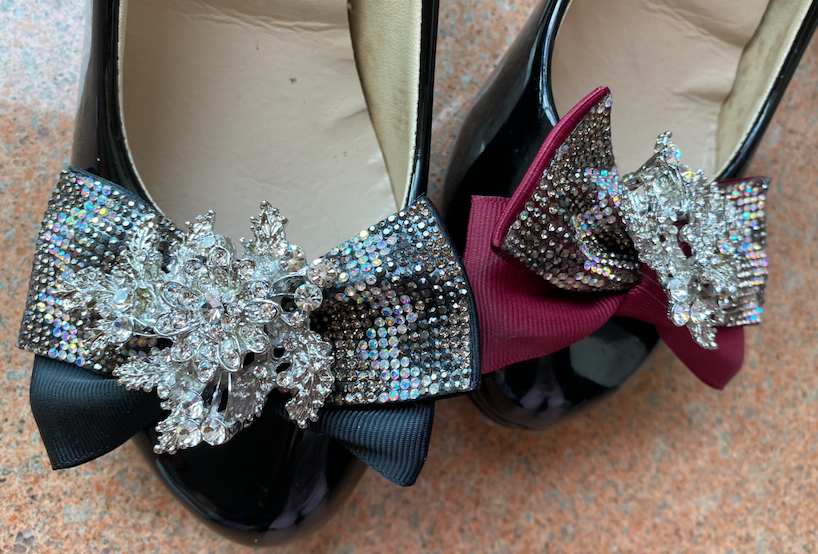 2 Pcs Black White Crystal Beads Bow Rhinestone Wedding Bow Shoe Clips