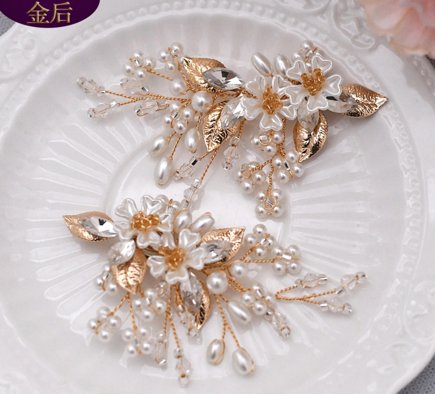 2 Pcs Fashion Rhinestone Crystal Pearl Gold Flower Shoe Clips Shoe Charms