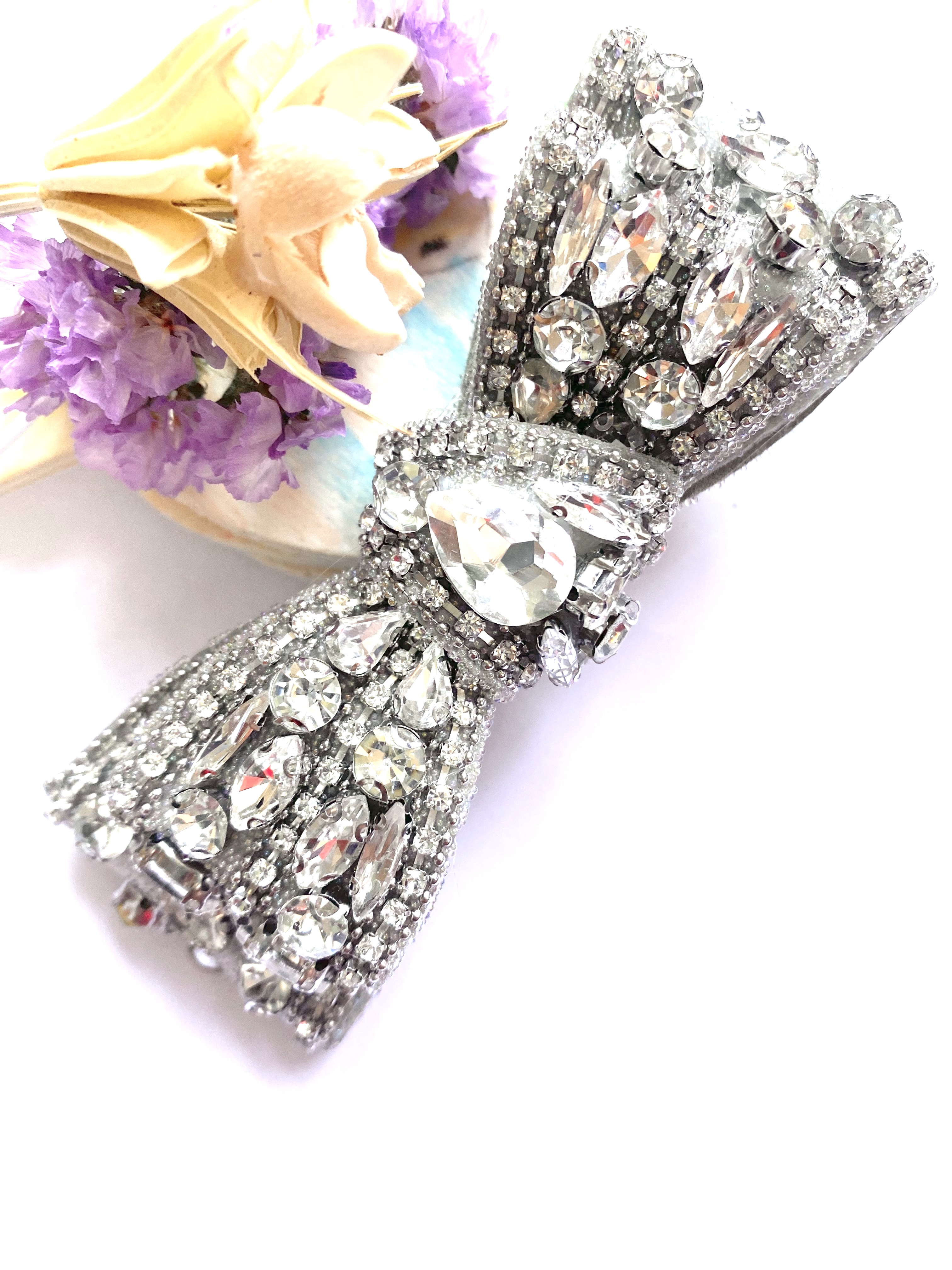 Wedding Rhinestone Crystal Grey Bow Hair Clip