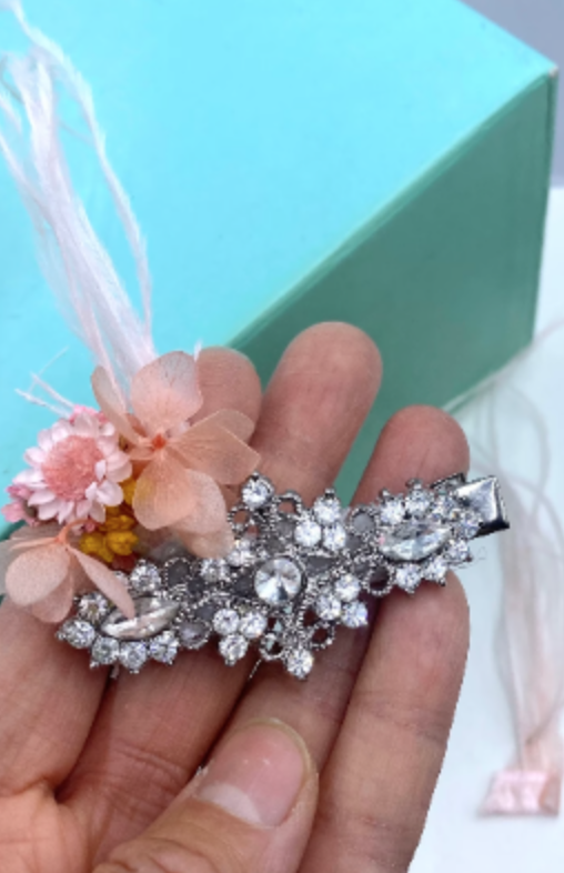 Handmade Wedding rhinestone crystal dried flower hair clip