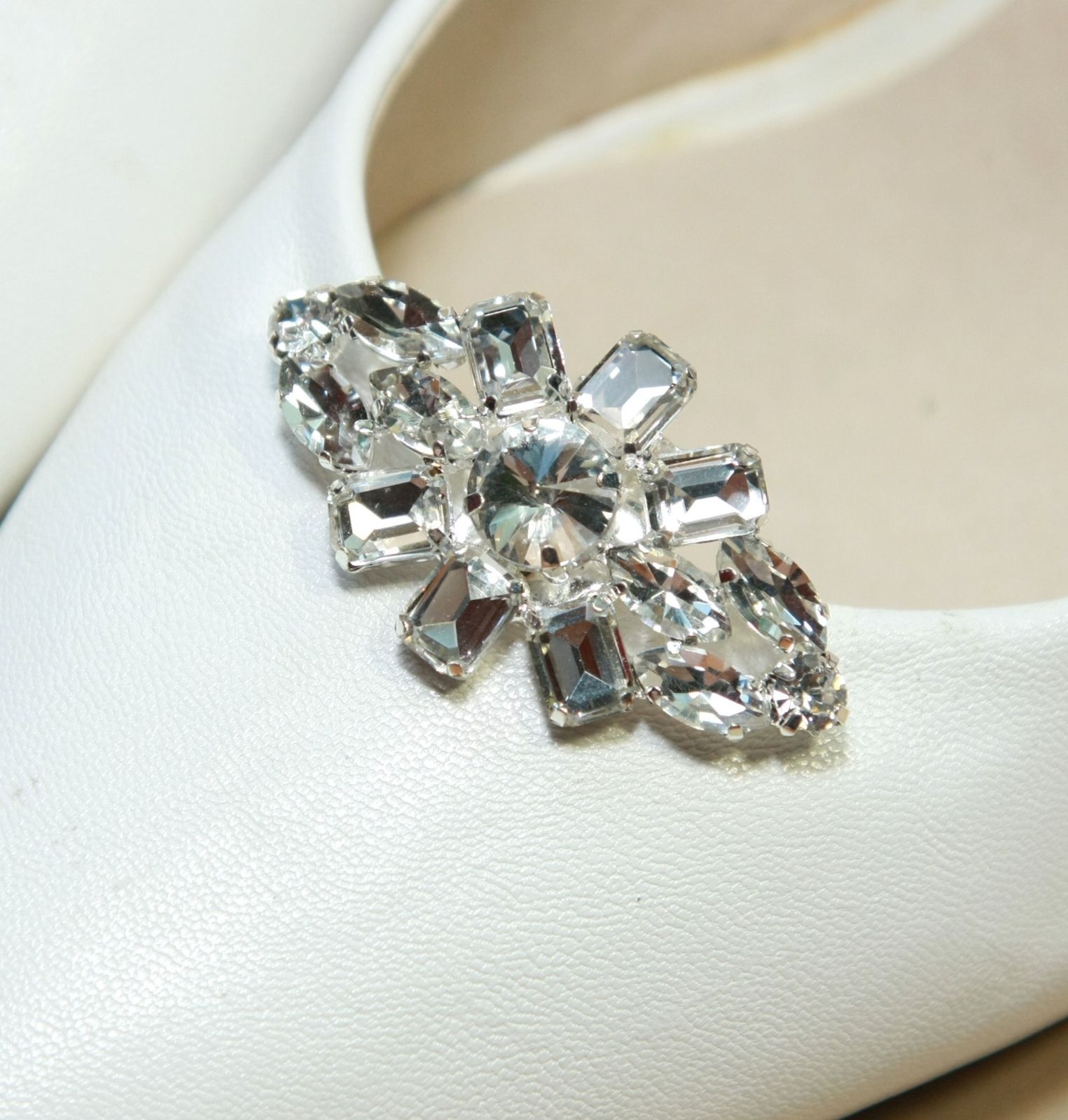 A PAIR OF RHINESTONE CRYSTAL WEDDING BRIDAL RHOMBUS BUCKLE SHOES CLIPS