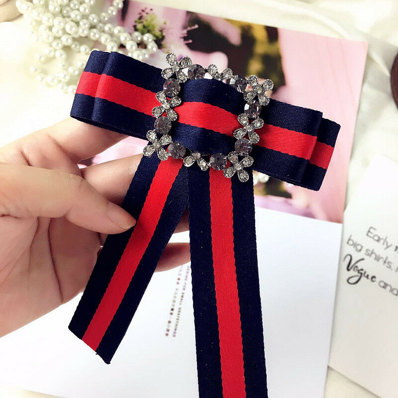 Red Blue Flower Crystal Fashion Ladies Men Pre Tied Bow Brooch Pin