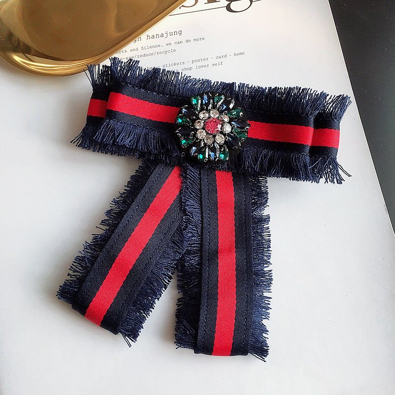 Grograin Ribbon Crystal Fashion Ladies Men Pre Tied Bow Brooch Pin