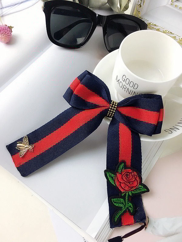 Red Rose Bee Ribbon Fashion Ladies Men Pre Tied Bow Brooch Pin