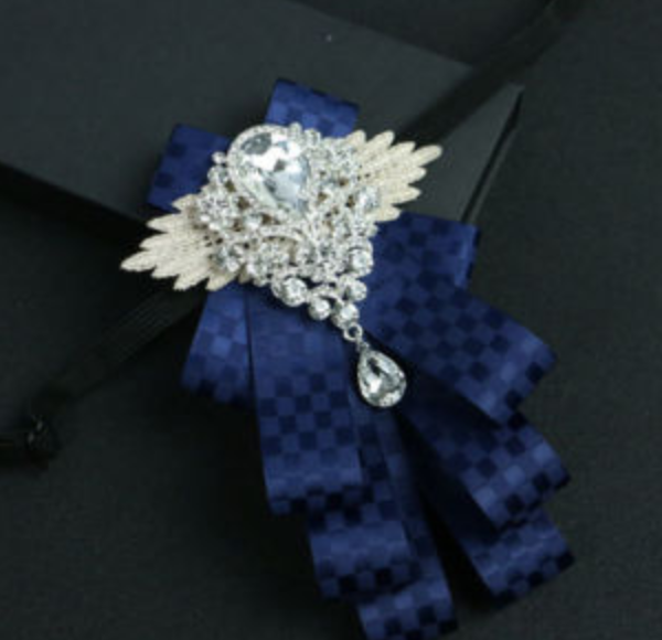 Gold Blue Red Dangle Crystal Men Pre Tied Bow Tie