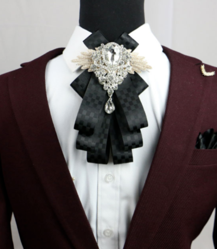 Black Burgundy Purple Checked Crystal Men Pre Tied Bow Tie Wedding Accessories