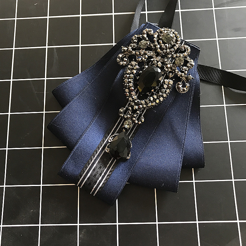 Wedding Men Pre Tied Bow Tie Crystal Dangle Blue Black Bowtie Necktie