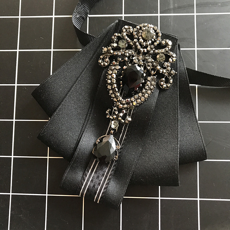Vintage Style Black Ribbon Wedding Men Pre Tied Lace Bow Tie Brooch Pin Clip