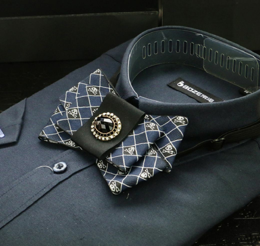 Wedding Men Pre Tied Bow Black Tie & Skull Bow Tie