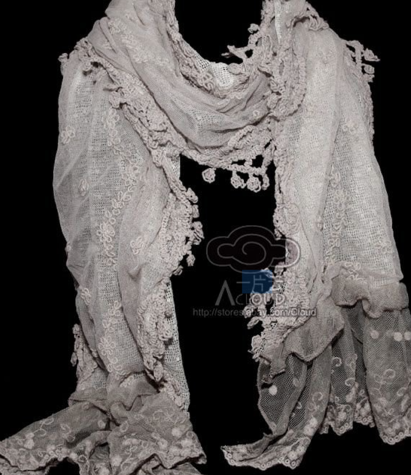 Vintage Style Grey Flower Lace Crochet Scarf