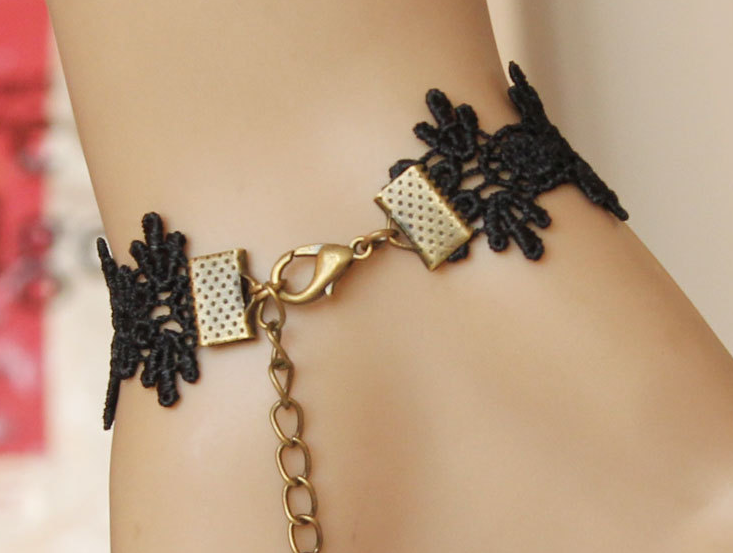 Gothic Goth Evening Black Lace Red Charm Droplets Slave Bracelet With Ring