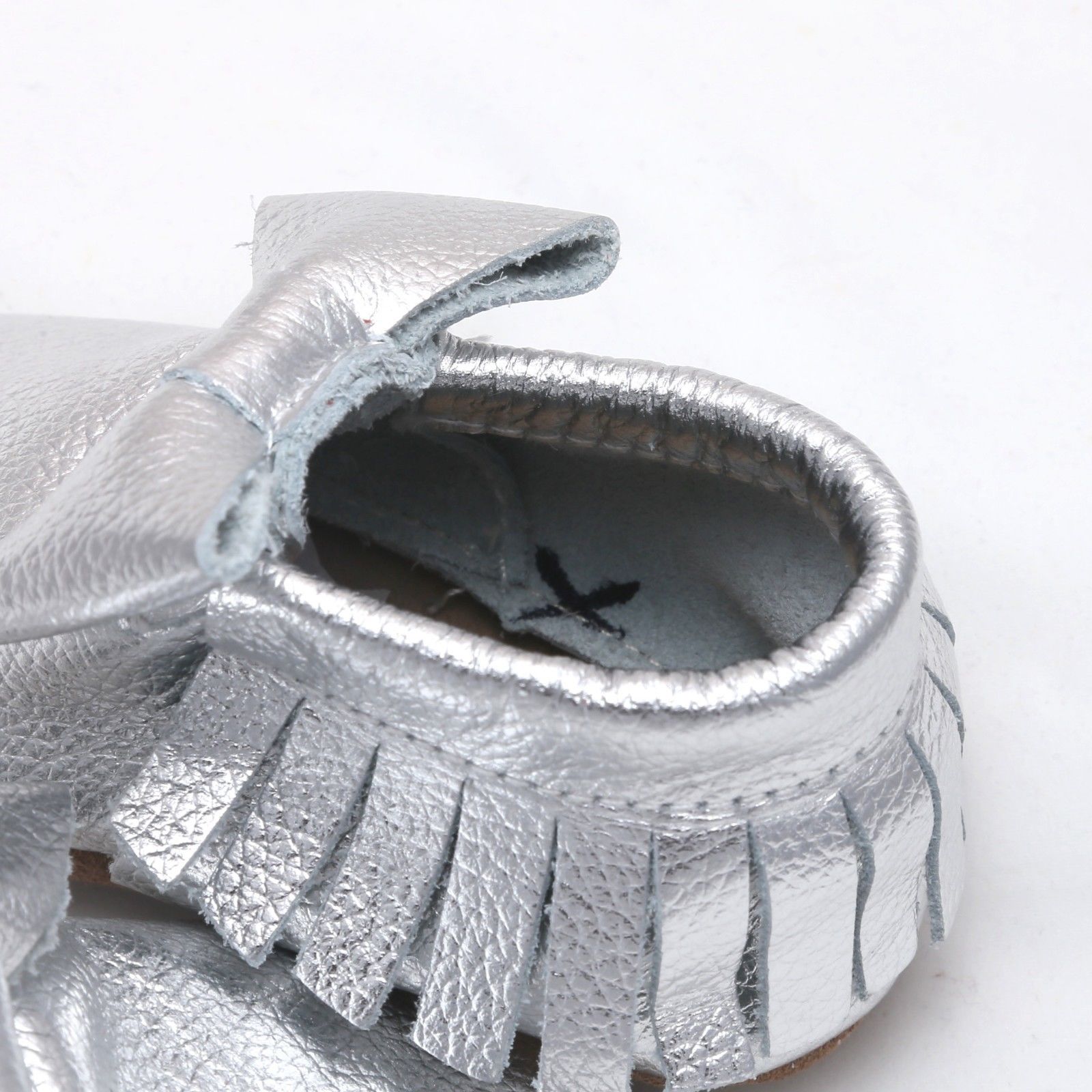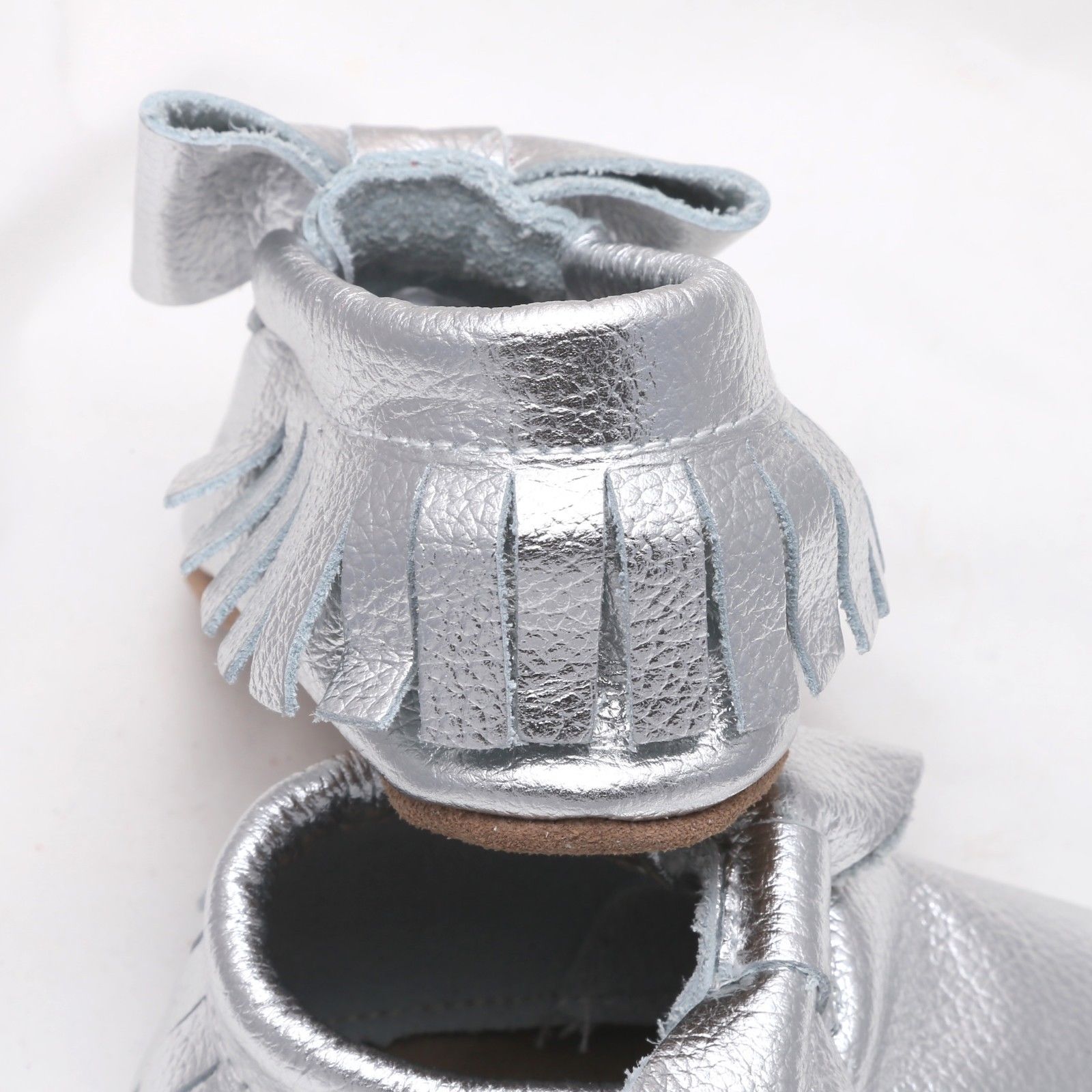 Baby Shower Moccasins Infant Boy Toddlers Silver Soft Genuine Leather Shoes