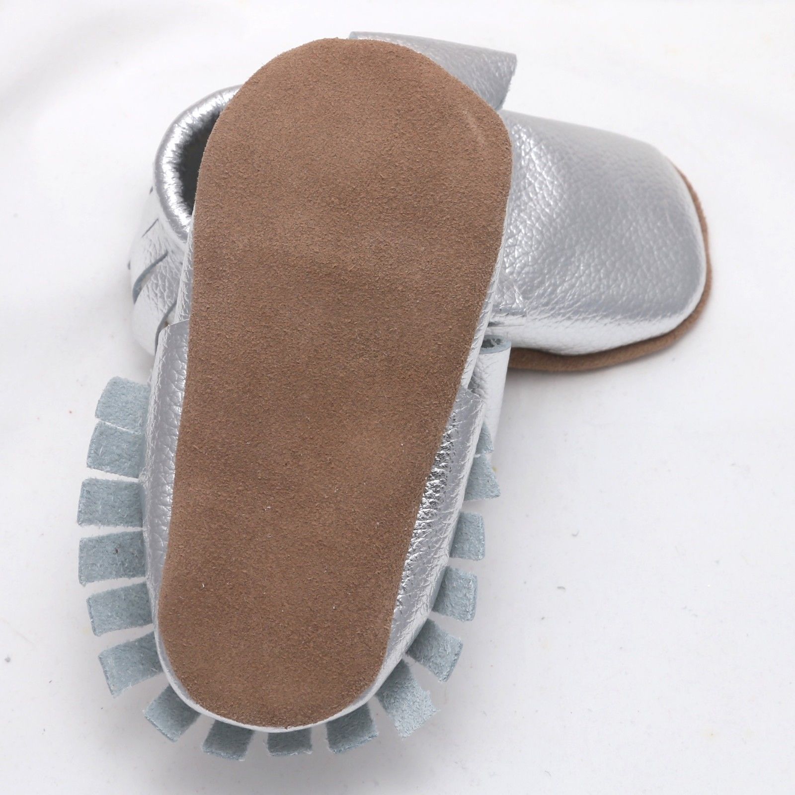 Cute Shower Moccasins Infant Baby Boy Toddlers Silver Soft Genuine Leather Shoes
